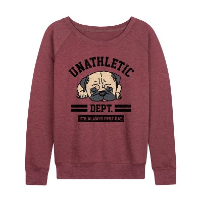 Women's - Instant Message - Unathletic Department Pug Lightweight French Terry Wide Neck Long Sleeve Graphic Shirt