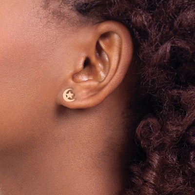 Steeltime Ladies stainless steel and 18k rose gold plated simulated diamonds stud earrings set