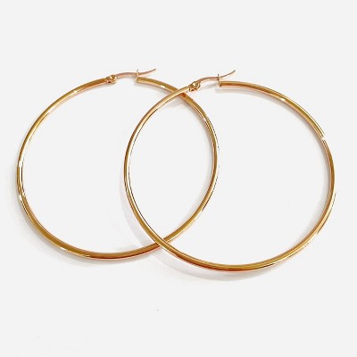 Steeltime Ladies stainless steel diamond cut hoop earrings. Color Options: Gold, Rose Gold