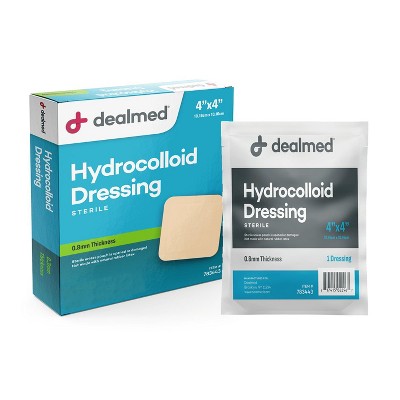 Dealmed 4" x 4" Hydrocolloid Dressing, Standard Thickness | Sterile Individually Packed Dressings | Provide Moist Wound Healing Environment (Standard,