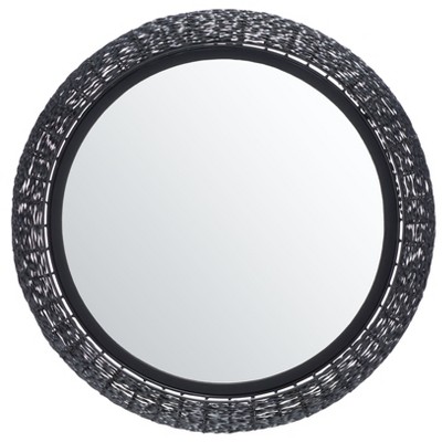 - large round black metal mirror