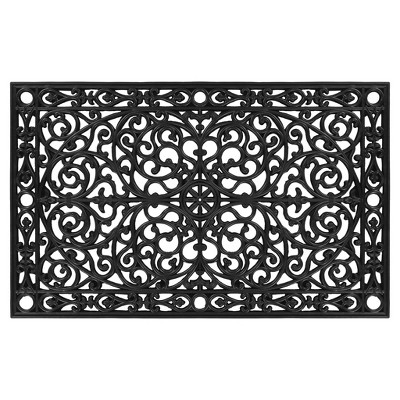 HomeRoots 30" X 48" Black Rubber Scrollwork Outdoor Door Mat