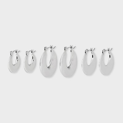 Ross-Simons Sterling Silver Jewelry Set: 3 Pairs Of Textured and Polished Hoop Earrings