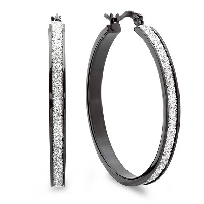 Steeltime Ladies stainless steel glitter 4mm*40mm hoops