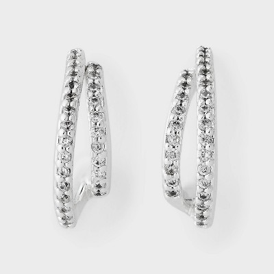 Sterling Silver Cubic Zirconia Faux Duo Stud Hoop Earrings - A New Day™ Silver: Nickel-Free, Post Closure