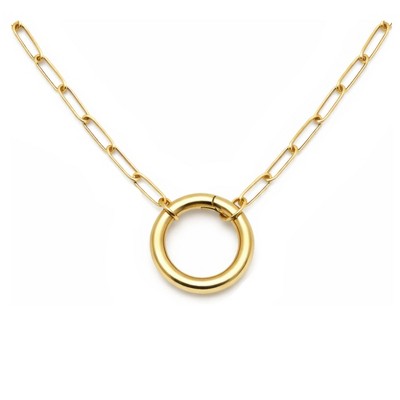 Paperclip Link Circle Carabiner Charm Holder Necklace for Women Stainless Steel 18"-20" Ginger Lyne Collection