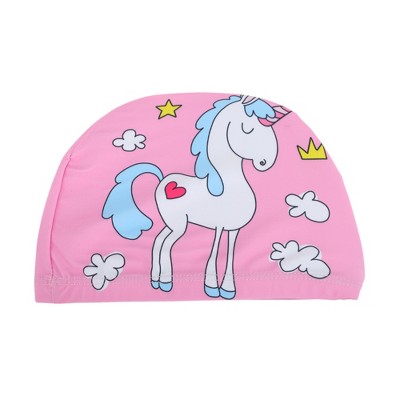 Unique Bargains Kid's Polyester Unicorns Pattern Swim Cap Pink White 1 Pc