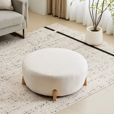 KTMBDW Modish Round Ottoman, 31.5" Large Footrest Ottoman with BoucleTop & Wood Legs, Ottoman Coffee Table for Living Room, Bedroom