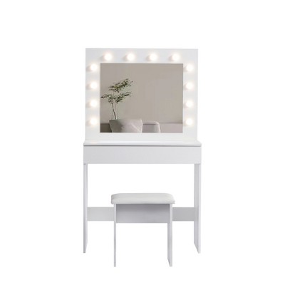 - single bathroom vanity with makeup area