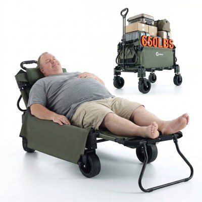 2-in-1 Heavy Duty Folding Garden Wagon Cart with Lounge Chair Conversion, Large Capacity, 360° Swivel All-Terrain Wheels, Portable Utility Cart
