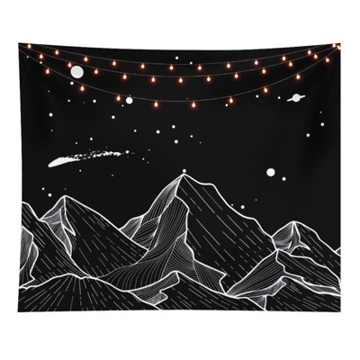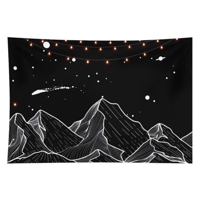 Minimalist Starry Mountain Tapestry LED String Light Compatible Polyester Breathable Non-Shedding Wall Decor for Dorm & Living Room 40x60 iniches