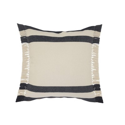HomeRoots Set of Two Navy Blue Ribbed Cotton Throw Pillow With Fringe