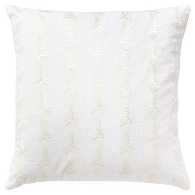 HomeRoots 20" White Cotton Throw Pillow With Embroidery