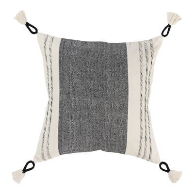HomeRoots 20" White and Black Striped Cotton Throw Pillow with Tassels and Texture
