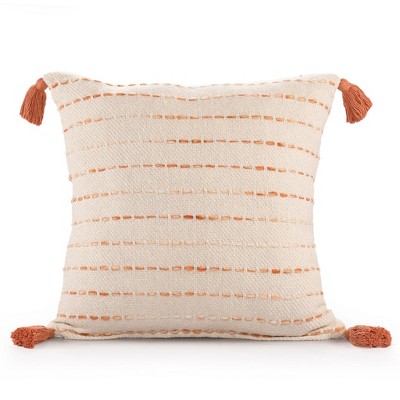 HomeRoots 20" X 20" Coral And Ivory 100% Cotton Striped Zippered Pillow