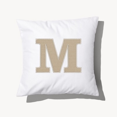 Personalization Mall Natural Initial Embroidered Applique Throw Pillow