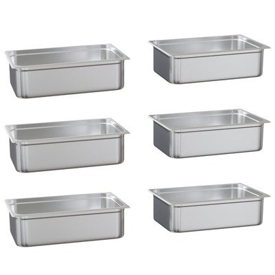 GustoWave 6-Piece Commercial Stainless Steel Hotel Pan Set – Full-Size Gastronorm Pans for Catering, Buffet Service & Food Storage