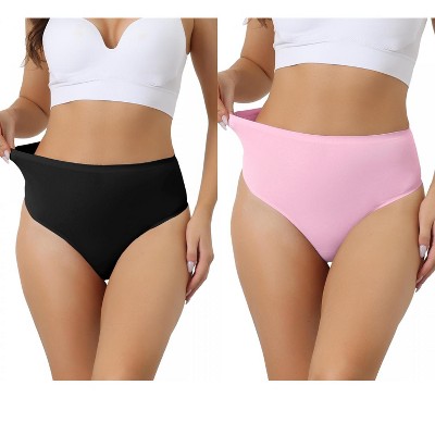 Allegra K Women's High Waist Tummy Control Stretch T-back Breathable Comfortable Thongs 2 Packs