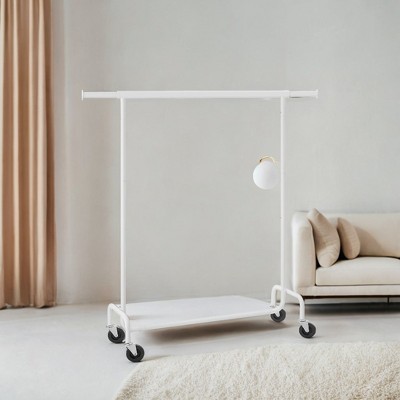 Double-Rod Clothes Rack with Wheels, 38.8 Inch Garment Rack with Shelf & 2 Side Rods, 220 lb Capacity, for Bedroom Closet, Beige & White
