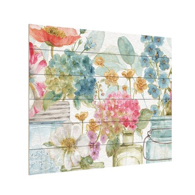 Gallerie II 13" x 15" Etched Farmhouse Floral Flowers Easter Rabbit Bunny Wood Hanging Wall Art