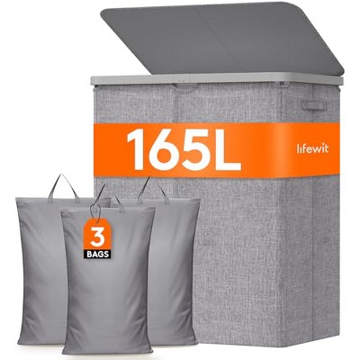 Laundry Hamper with lid,110L Laundry Basket with 2 Removable Bags,2 Section Dirty Clothes Basket for Laundry Room Closet Bathroom