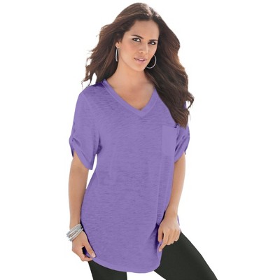 Roaman's Plus Size Slub V-Neck Boyfriend Tunic Top
