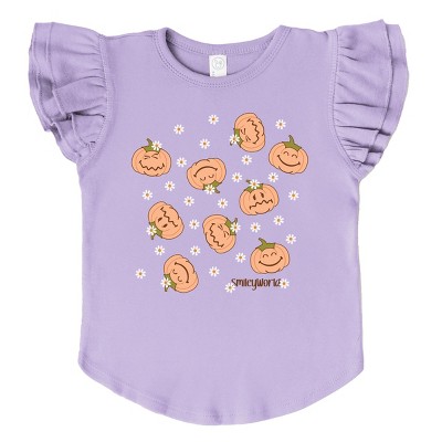 The Juniper Shop SmileyWorld Pumpkin Collage Daisies Flutter Sleeve Tee