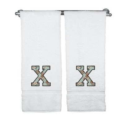 BC BARE COTTON Monogrammed Towels, Personalized Gift, Set of 2 - Embroidered Writing with Greenish Cyan