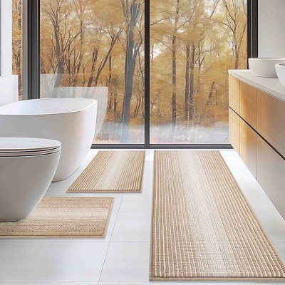Double Ruffle Bathroom Rugs Set, Machine Washable Rug, Extra Soft and Absorbent bath Rug, Kitchen Mat, Bath Mat Set,Non-Slip, 3 Pcs Set, Butter