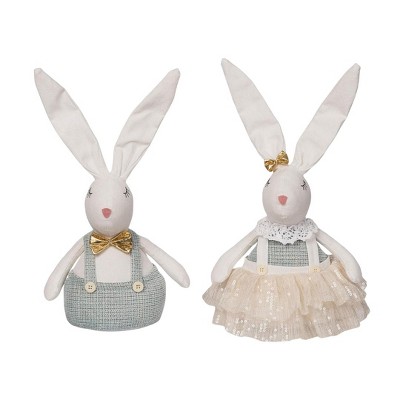 Transpac Plush Easter Bunny Door Stop Set of 2 Decorative Home Decorations Made of Soft Polyester