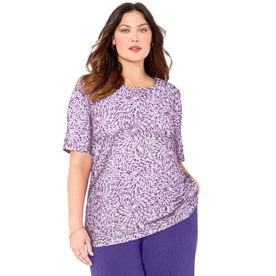 Roaman's Plus Size Angelina Tunic Top – Short Sleeve, Flowy Fit, Everyday Comfort