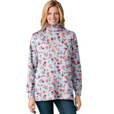 Woman Within Perfect Printed Long-Sleeve Crewneck Tee