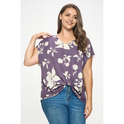 WEST K Women's Leah V Neck Short Dolman Sleeve Front Knob Blouse