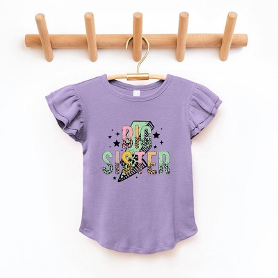The Juniper Shop Big Sister Lightning Bolt Toddler Flutter Sleeve Tee