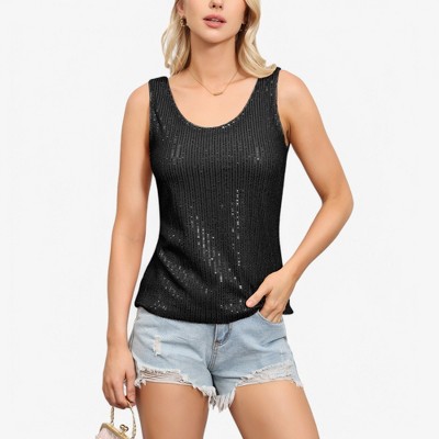 Anna-Kaci Women's Sequin Tank Top Sleeveless Scoop Neck Sparkly Party Fashion Blouse
