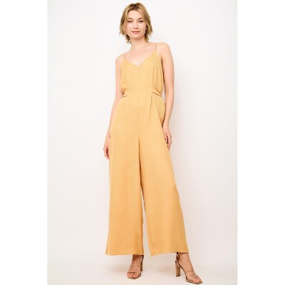 Women's Camel Faux Suede Wide Leg Jumpsuit -Cupshe