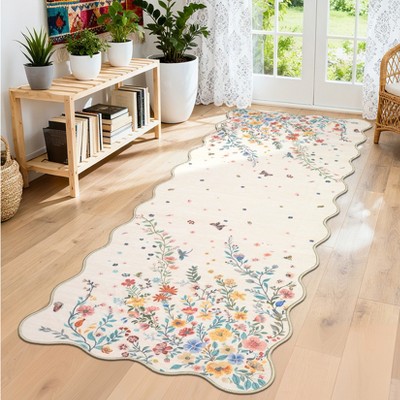 Nasitip Traditional Falling Flowers Area Rug for Living Room Bedroom, Washable Low-Pile Rug with Non-Slip Backing