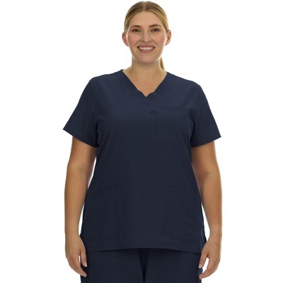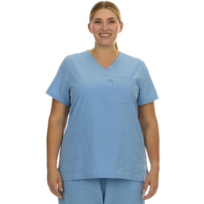 HEAL+WEAR Plus Size Women’s V-Neck Scrub Top – Multi-Pocket Medical Uniform for Nurse, 4-Way Stretch,Nurse Workwear