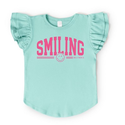The Juniper Shop SmileyWorld Checkered Lightning Floral Flutter Sleeve Tee