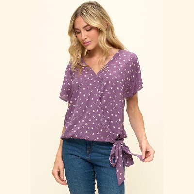 WEST K Women's Dallas Side-Tie Short Dolman Sleeve Faux Wrap Top