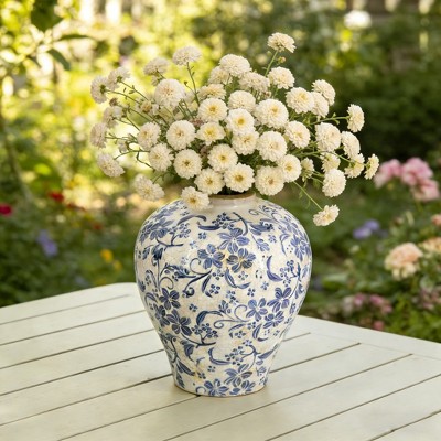 HomeRoots 6" Ivory Ribbed Round Terracotta Table Vase