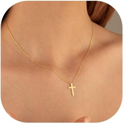 SmallRig Layered Sideways Cross Necklace 14K Gold Plated Dainty Choker for Women