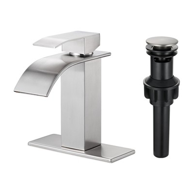 Cobbe Single Handle Single Hole Matte Black Waterfall Bathroom Sink Faucet with Deck Plate and Pop-Up Drain Assembly