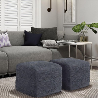Livabliss Denim 16"H x 16"W x 16"D Natural Fiber Navy Pouf