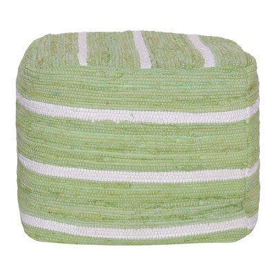 HomeRoots 18" Green And White Cotton Cube Striped Pouf Ottoman