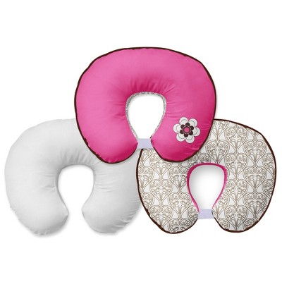 Bacati - 3 pc Damask Pink/chocolate Hugster Feeding & Infant Support Nursing Pillow