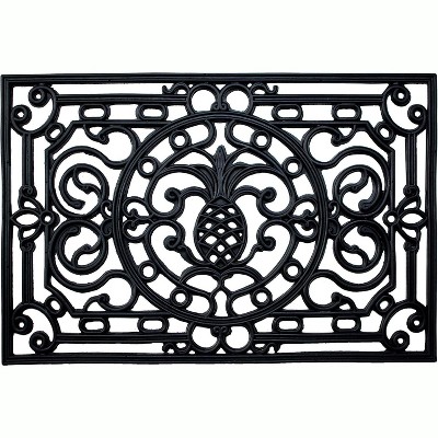HomeRoots 24" X 36" Black Pineapple And Scrollwork Outdoor Rubber Door Mat