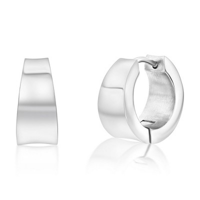 Metallo Mens Stainless Steel 16x7mm Polished Huggie Earrings - Silver