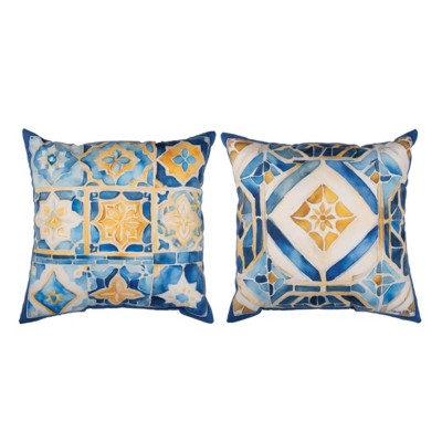 16" x 16" x 4" Outdoor Throw Pillow Set Washed Turquoise: Weather-Resistant, Jordan Manufacturing