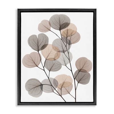 Stupell Industries Modern Eucalyptus Leaf Stems Translucent Brown Grey Leaves Floating Frame Canvas Art, Black, 17" x 21"